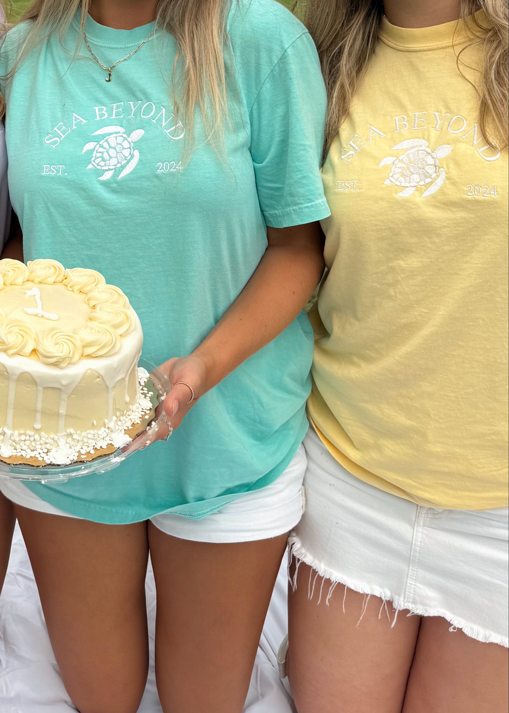 Our Butter Yellow Turtle Tee is created with 100% cotton and offers a relaxed fit for ultimate comfort. For a trendy oversized look, simply size up. The Turtle Tee design is embroidered into a comfort colors tee.