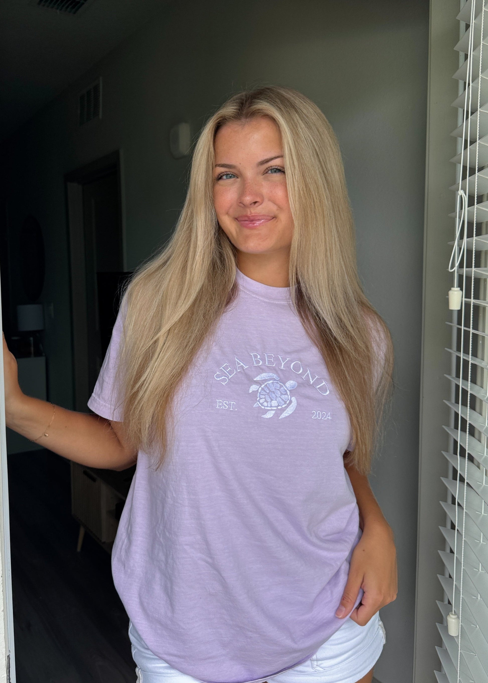 Our Lavender Turtle Tee is created with 100% cotton and offers a relaxed fit for ultimate comfort. For a trendy oversized look, simply size up. The Turtle Tee design is embroidered into a comfort colors tee.